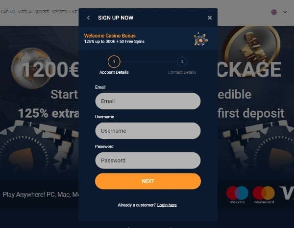 This casino doesn’t have a no-deposit bonus for new signees. Instead, all newcomers can claim a four-part welcome bonus worth €1,200 + 150 free spins.