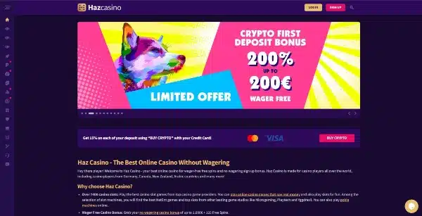 Note: At the time of our review, we did not find a Haz casino no deposit bonus for players.