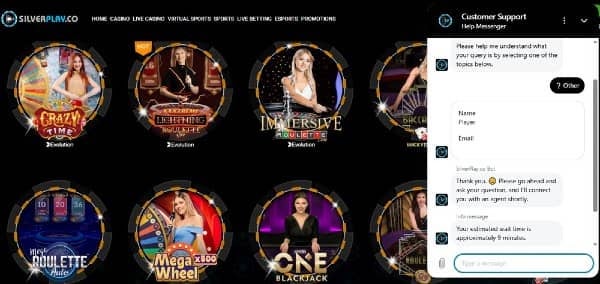 According to Silverplay, the estimated wait time for live chat is 9 minutes, although it can be faster in most cases. Customer service is available in multiple languages, including Silverplay Arabic.