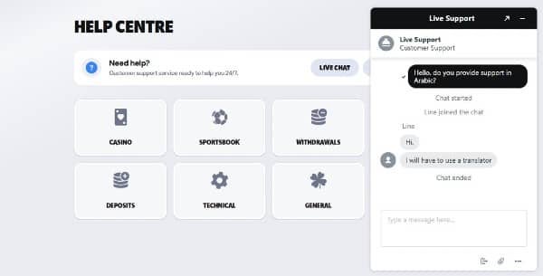 The primary support language is English. However, Supabet uses an auto-translate service to provide support in other languages, including Arabic.